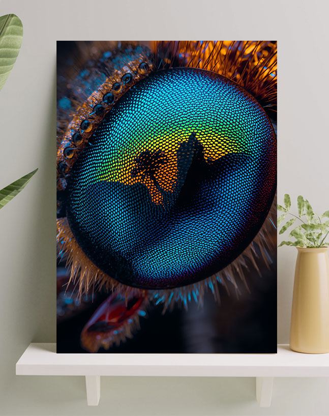 اگر از آن دسته افرادی هستید که عاشق دقت، ظرافت و زیبایی در جزئیات هستید، تابلو چشم زنبور دقیقاً همان چیزی است که باید در خانه یا محل کارتان داشته باشید. این تابلو نه فقط یک تصویر ساده از چشم زنبور، بلکه پنجرهای به دنیای شگفتانگیز و ناشناختهی طبیعت است. زمانی که از نزدیک به چشم زنبور نگاه میکنید، شبکهای از هزاران الماس کوچک را میبینید که هرکدام بازتابی از نور و زندگی هستند. همین نگاه دقیق و پرجزئیات باعث شده این تابلو برای هر دیوار، حالتی علمی، زیبا و پر رمز و راز ایجاد کند.